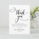 Tarjeta de agradecimiento de boda con foto y letra de caligrafía caprichosa Chic Moderno. Plantilla elegante de agradecimiento de boda que incluye una foto vertical completa, texto "Gracias" en una tipografía de letra manuscrita caprichosa con florituras en fuente de escritura en negro y blanco. Tarjeta de 2 caras con mensaje de agradecimiento pre-hecho en la parte delantera y foto completa en la parte trasera. Fácil de personalizar su nombre y mensaje de agradecimiento. Si prefiere escribir a mano su nota, simplemente elimine el texto de muestra para hacer más espacio. Si necesita ayuda o artículo coincidente, ¡por favor contácteme!