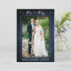 Moderno guión de caligrafía simple Minimalista Mr. and Mrs. Heart Boda Bride and Groom Photo Card - Rustic Country Blue Wood