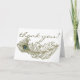 Ilustración caprichosa de una pluma de pavo real ornamentada verde. Esta tarjeta de agradecimiento simple pero clásica es perfecta para bodas, baby showers, fiestas de novia y otros eventos.