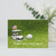 Tarjeta De Agradecimiento Carro de golf con pelota de golf y bandera estadou