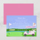 Esta tarjeta de agradecimiento para una despedida de soltera con tema de golf está diseñada con la novia en el centro de su diseño. Cuenta con un green de putting en forma de corazón y un pin de bandera ondeando en la brisa, con las palabras "Novia a punto de casarse" estampadas en él. El carrito de golf está adornado festivamente con champán, regalos, una tiara y una elaborada tarta de despedida de soltera ilustrada de manera intrincada. Un velo de novia cae elegantemente desde la bolsa de golf, añadiendo un toque encantador. Diseñada por Daphsam, esta tarjeta de agradecimiento única viene con una plantilla fácil de usar para garantizar una planificación sin estrés.