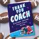 Tarjeta de agradecimiento de casco de balón de fútbol de dibujos animados entrenador. Muestre su aprecio con esta divertida y sincera tarjeta de agradecimiento de fútbol diseñada especialmente para entrenadores. Con una audaz ilustración de dibujos animados de un balón de fútbol y un casco en rojo, azul marino y blanco, esta tarjeta es perfecta para equipos juveniles o jugadores individuales. Ideal para regalos de fin de temporada o simplemente para agradecer a un entrenador inspirador. Agregue su mensaje dentro o elimínelo.