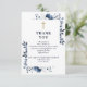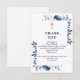 Tarjeta de agradecimiento de funeral cristiano decorada con un elegante diseño floral azul marino personalizada con su propio mensaje de agradecimiento. Diseñada por Thisisnotme©