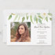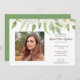 Simple y con clase, este diseño floral elegante es la de manera perfecta de honrar salido recientemente durante una celebración del alumerzo o de la cena del servicio de la vida. Flores blancas de la acuarela pintada a mano de las características y hojas del verde y una plantilla de la imagen del salido recientemente en el frente. La parte posterior ofrece un color verde a juego y un punto adicional para el texto adicional. Toda la tipografía se puede cambiar para caber sus detalles conmemorativos. Substituya la plantilla de la foto por su propio color o blanco y negro para modificar para requisitos particulares.