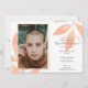 Simple y con clase, este diseño floral elegante es la de manera perfecta de honrar salido recientemente durante una celebración del alumerzo o de la cena del servicio de la vida. Características oro y hojas de la acuarela del melocotón y un marco del oro alrededor de la plantilla de la imagen del salido recientemente en el frente. Toda la tipografía gris y blanca se puede cambiar para caber sus detalles conmemorativos. Substituya la plantilla de la foto por su propio color o blanco y negro para modificar para requisitos particulares.
