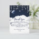 Tarjeta de agradecimiento celestial con nubes y estrellas que brillan. Artículos coincidentes en mi tienda.