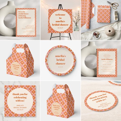 Retro Pink Orange Mid Century Modern Bridal ShowerDiseñado por Opal Ellery