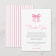 Expresa tu gratitud con nuestra tarjeta de agradecimiento de lazo de acuarela rosa, diseñada para celebrar la llegada de tu pequeño con elegancia y encanto moderno. Esta tarjeta bellamente elaborada presenta un delicado lazo de acuarela combinado con una tipografía sofisticada, que encarna una estética simple, elegante y clásica. Los toques femeninos y elementos coquetos la convierten en una opción perfecta para una elegante fiesta de shower nupcial. La tarjeta también muestra un bonito gingham rosa suave en la parte posterior.