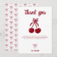 Tarjeta De Agradecimiento Cherry Baby Shower Thank you Cute Coquette Bow