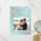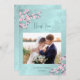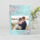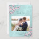 Flores de cerezo rosa bonito y su foto boda sobre un fondo floral turquesa brillante. Diga gracias a sus seres queridos con estilo con nuestra tarjeta de agradecimiento de boda personalizada. Con una hermosa rama rosa de flores de cerezo y una foto de boda personalizada, muestra un ambiente hermoso y romántico.