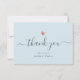 Tarjeta De Agradecimiento Chic Azul Claro Corazón Moderno de Rosa Dourada