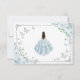 Baby blue silver and white Quinceanera thank you card. Features brunette girl in ball gown dress, script font, silver butterflies, roses and tiara. Perfect for an elegant princess style glam celebration. Personalize with your own details.