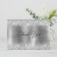 Tarjeta de agradecimiento con monograma de falso brillo plateado de metal cepillado Chic. Tarjeta de Navidad brillante y linda con purpurina. Perfecta para enviar a familiares o amigos durante la temporada navideña, cumpleaños o cualquier otra ocasión. Para hacerla aún más especial, está adornada con hermoso falso brillo. Este diseño también se puede transferir a cualquier producto en Zazzle. Puedes personalizarlo con tu propio texto e información.