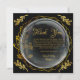 Esta elegante tarjeta de agradecimiento negra y dorada presenta una corona circular geométrica floral con delicadas hojas doradas sobre un fondo negro, un diseño atemporal y moderno que se adapta a muchas ocasiones especiales. Ya sea que esté enviando un mensaje de gratitud después de un aniversario de bodas, una fiesta de bebé, una fiesta de compromiso, una celebración de graduación o una reunión de jubilación, esta tarjeta de agradecimiento minimalista y lujosa agrega el toque final perfecto.