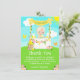 Esta tarjeta de agradecimiento linda y caprichosa presenta a una niña de cabello rubio con piel clara en un puesto de limonada amarillo que está decorado con flores y banderines. Al fondo hay un cielo azul, sol y mariposas. El texto combina fuentes decorativas y sans serif para un look elegante y moderno. Esto es perfecto para una fiesta de cumpleaños de verano.
