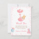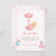 Esta adorable tarjeta de agradecimiento a su bebé incluye un conejo chica que se viaja con globos de corazón con un guión elegante y un texto moderno para sus detalles. La parte posterior muestra a un conejito con un globo estrella. Fácil de personalizar haciendo clic en "Personalizar".