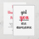 Una tarjeta casual "chica, eres increíble". Tarjeta de apreciación roja y negra que se puede hacer personal con un gesto agradable del jefe, compañero de trabajo o cualquier persona. Simplemente utilice la opción "personalizar esta característica de plantilla" para editar el texto y convertirlo en el suyo propio. Hay otros estilos de papel disponibles.