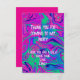 Mi hija y yo creamos este diseño de remolino genial en verde azulado brillante, púrpura, azul y rosa caliente. Agregamos un poco de brillo falso para un efecto brillante. Crea el fondo perfecto para el cumpleaños de tu increíble fiesta de slime. "Gracias por venir a mi fiesta" está escrito en letra divertida. "Espero que hayas tenido un gran momento de slime" es editable para personalizar. Asegúrate de agregar tu nombre. La parte trasera de la tarjeta está en blanco con un fondo rosa caliente.
