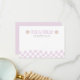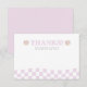 Celebra el primer cumpleaños de tu chica groovy con nuestras divertidas tarjetas planas de agradecimiento post-cumpleaños 'UNA CHICA RADICAL' con cuadros lavanda. Este diseño presenta una cara feliz fácil de amar con gafas de signo de paz y patrones de cuadros ondulados lavanda.