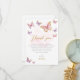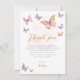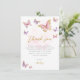 Tarjeta de agradecimiento para baby shower de niña mariposa rosa dorada.
