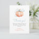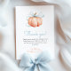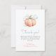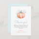 Esta elegante y encantadora tarjeta de agradecimiento para baby shower cuenta con una hermosa ilustración de acuarela de una calabaza con una delicada cinta azul, perfecta para celebrar la próxima llegada de un pequeño en la temporada de otoño.