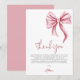 Tarjeta de agradecimiento para ducha de novia con lazo rosa minimalista y elegante con un hermoso lazo rosa y tipografía manuscrita. Ilustrado y diseñado por Patricia Alvarez.