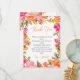 Expresa tu gratitud con estilo con esta hermosa tarjeta de agradecimiento doblada, perfecta para las despedidas de soltera. Con un vibrante diseño floral pintado a mano en tonos brillantes de rosa, naranja y amarillo, esta tarjeta emana calidez y alegría. La elegante escritura “Gracias” en la parte frontal se complementa con un mensaje sincero en el interior, lo que facilita mostrar su agradecimiento por la presencia y los regalos de los invitados. Ideal para una despedida boho o con tema floral, esta tarjeta sirve como un hermoso recuerdo y una forma considerada de decir gracias.