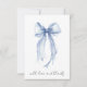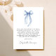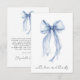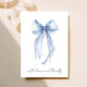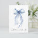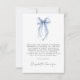 Tarjeta de agradecimiento de despedida de soltera elegante con una acuarela de un lazo coquette azul claro y "con amor y gracias" en una tipografía moderna y chic. En el reverso, personalice su mensaje de agradecimiento con una letra simple y agregue su nombre en una tipografía que semeja una firma, o déjelo en blanco para una nota manuscrita.