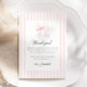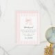 Tarjeta de agradecimiento elegante y minimalista para baby shower que presenta un patrón de rayas rosadas y blancas y un lazo adorable.