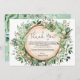Tarjeta de agradecimiento con tema botánico rústico que presenta elegantes hojas de vegetación de acuarela. Personalice el texto para adaptarlo a su evento, es decir, ducha de novia, lluvia de bebé, cumpleaños, bautizo, bautismo, primera comunión, etc.