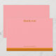 Este diseño personalizado de agradecimiento presenta un fondo rosa lindo combinado con un acento dorado cálido para un aspecto moderno y discreto. La tipografía minimalista mantiene el enfoque en la gratitud sincera, mientras se coordina fácilmente con papelería contemporánea de despedida de soltera o boda. Personalice con su nombre para crear un toque final pulido para notas enviadas después de la celebración. Una opción atemporal para parejas que aman el diseño limpio con un toque sutil de color.