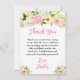 Esta hermosa y elegante tarjeta de agradecimiento para baby shower cuenta con flores de acuarela rosadas, amarillas y blancas con follaje. El texto combina fuentes manuscritas y serif para un look elegante y moderno. Esto es perfecto para un baby shower rústico de primavera o verano.