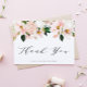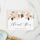 Envía gracias a tus invitados con esta tarjeta de agradecimiento de baby shower personalizable. Cuenta con magnolias rosadas y hydrangeas con acentos de foil de rosa dorado falso. Personaliza añadiendo tus detalles. Esta tarjeta de agradecimiento floral rosa es perfecta para baby showers, despedidas de soltera, bodas y otros eventos.