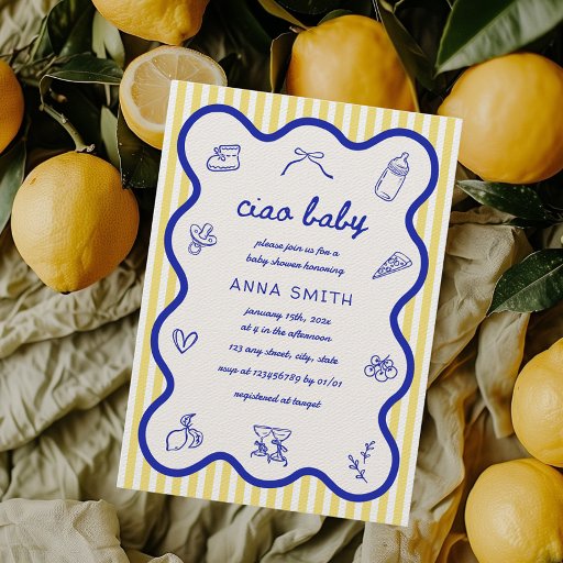 Tarjeta De Agradecimiento Ciao Baby Lemon Italiano Mano Dibujada Baby Shower