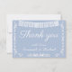 Elegant and timeless, this Cielito Lindo thank you card features delicate white papel picado banner artwork and ornamental floral accents on a soft dusty blue background. The refined script typography adds a romantic touch, making it perfect for a baby shower, baptism, or special celebration inspired by Mexican traditions.