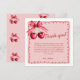 Di gracias de la manera más dulce con nuestras Tarjetas de Agradecimiento para Despedida de Soltera Cherry On Top. Adornadas con cerezas rojas y rosadas dibujadas a mano, atadas con un delicado lazo y enmarcadas por un borde ondulado y festoneado, este diseño inspirado en la coquetería aporta un encanto juguetón y una elegancia sincera a tu papelería de despedida de soltera. El área de mensaje reflexivo hace que sea fácil expresar tu gratitud a seres queridos que hicieron que tu día fuera aún más especial. Perfectas para combinar con tu celebración temática de cereza, estas tarjetas de agradecimiento son una forma elegante de envolver tus festividades nupciales con amor y gracia.