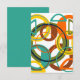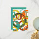 Esta tarjeta de nota tiene un diseño moderno de mediados de siglo de círculos y semicírculos en naranja, amarillo, verde, marrón y turquesa sobre un campo de blanco. Añade tu propio mensaje personal en la parte posterior. Si quieres el mismo diseño con colores diferentes, envíame un mensaje.