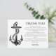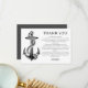 Sumérjase en la sofisticación costera en su despedida de soltera con nuestra tarjeta de agradecimiento de tema náutico de playa con ancla. Con un motivo de ancla atemporal y un fondo negro y blanco elegante, esta tarjeta emana elegancia y encanto. Perfecta para novias que organizan una despedida de soltera con tema náutico, de playa o tropical, esta tarjeta prepara el escenario para una celebración elegante y memorable.