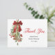 Expresa tu gratitud con estilo navideño con esta tarjeta de agradecimiento de Muérdago y Lazo Rojo. Con elegante follaje de acuarela, delicadas bayas y una cinta roja festiva, es la manera perfecta de agradecer a los invitados después de tu lluvia de bodas de Navidad o invierno.