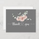 Tarjeta De Agradecimiento Clásica Rosa Rosa Floral Gris Liso Boda