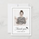Elegant classic script and timeless borders frame with pictures in black and white, more party details on the back, simple and sophisticated, great personalized thank you card for graduation party.