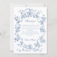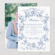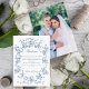 This classic and romantic design is a modern adaptation of an historic French etched frame of dusty blue intertwined roses, flowers, foliage and ribbons ca 1770 by Rococo designer Pierre Ranson. It includes customizable text fields and an optional photo template on the back.