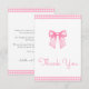 Tarjeta De Agradecimiento Classic Gingham Pink Bow Baby Shower
