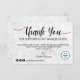 La tarjeta de agradecimiento para clientes con fuente de escritura en mármol blanco personalizable es una forma elegante y con estilo de mostrar aprecio a sus clientes. La tarjeta cuenta con un fondo de mármol blanco con una hermosa fuente de escritura que dice "Gracias" en hoja de oro. Puede personalizar la tarjeta agregando su propio mensaje, logotipo y colores de marca. La tarjeta de alta calidad está impresa en cartulina gruesa y viene con un sobre a juego. Esta tarjeta es perfecta para empresas que buscan crear una experiencia memorable y personalizada para sus clientes.