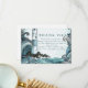 This coastal wedding design features a hand-illustrated lighthouse rising above dramatic ocean waves, framed by flowing watercolor textures in soft teal, seafoam, and deep blue tones. The composition blends nautical romance with an elegant, storybook feel, creating a striking yet refined seaside aesthetic.
