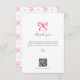 Tarjeta de agradecimiento personalizada para fiesta de despedida de soltera con código QR y acuarela simple y elegante con lazo rosa coquette "Ella está atando el nudo".