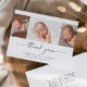 Tarjeta de agradecimiento de colaje de fotos de bebé con guión simple. La parte trasera incluye un mensaje de agradecimiento que puedes personalizar o eliminar si prefieres escribir a mano tu agradecimiento.
