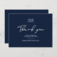 Este diseño de tarjeta de agradecimiento azul marino y blanco moderno presenta tipografía elegante "Gracias" y texto personalizado con iconos de redes sociales. Tarjeta de inserción perfecta para el embalaje de su producto. Más diseños de papelería comercial disponibles en mi tienda BaraBomStudio.