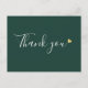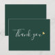 Una elegante tarjeta postal de agradecimiento comercial con un corazón dorado sobre un fondo verde esmeralda. Una forma perfecta de dar las gracias a sus clientes. Este diseño elegante es ideal para una amplia gama de negocios, incluyendo spas, salones, estilistas de cabello y maquillaje, boutiques, esteticistas y floristas. Diseñado por Thisisnotme©