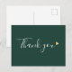 Una elegante tarjeta postal de agradecimiento comercial con un corazón dorado chic en un fondo verde esmeralda. Una forma perfecta de decir gracias a sus clientes. Este diseño elegante es ideal para una amplia gama de negocios, incluyendo spas, salones, estilistas de cabello y maquillaje, boutiques, esteticistas y floristas. Diseñado por Thisisnotme©
